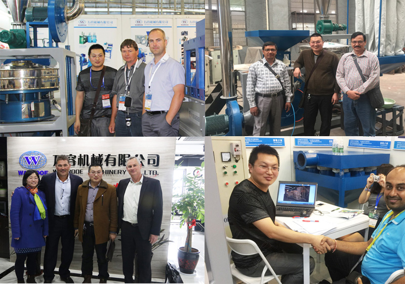 万容机械其废旧塑料再生设备是万容产品的一个重要组成部分。单轴撕碎机、双轴撕碎机、粉碎机、摩擦清洗机、分离沉淀池、离心脱水机及相关成套设备广泛运用于薄膜回收清洗、牛奶瓶、PET瓶回收清洗等行业。该生产线独特的模块化设计允许上述单机设备在多样化方案中重新整合,满足各种生产需求。